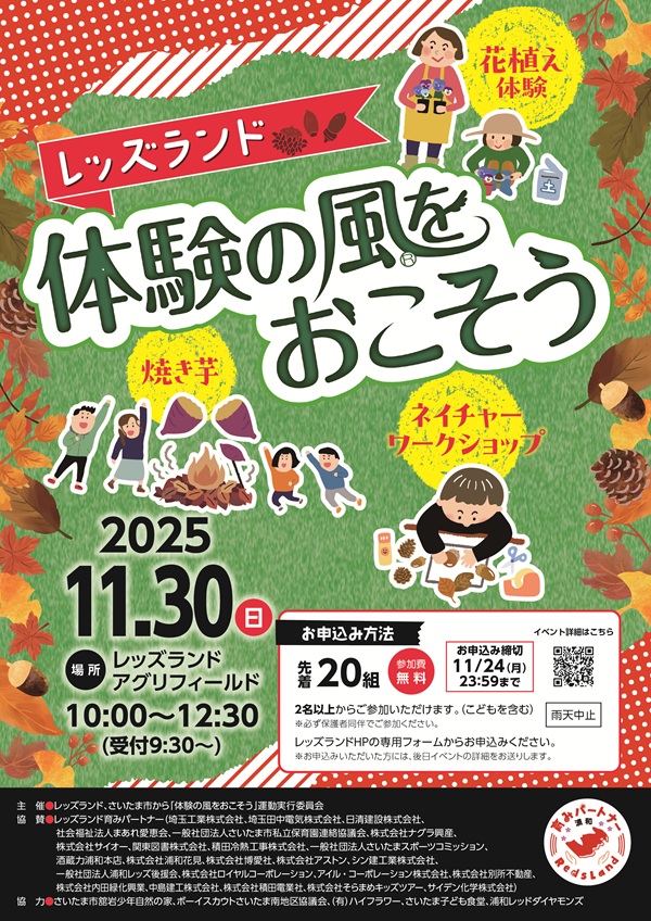 【主催】一般社団法人レッズランド/、さいたま市から「体験の風をおこそう」運動実行委員会