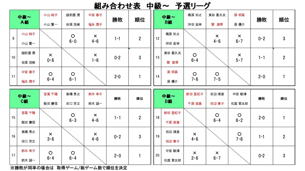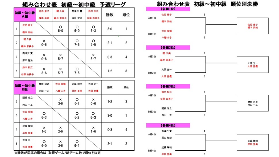 11/24(月休)に開催いたしました「エンジョイテニス大会」の結果をお知らせいたします。
