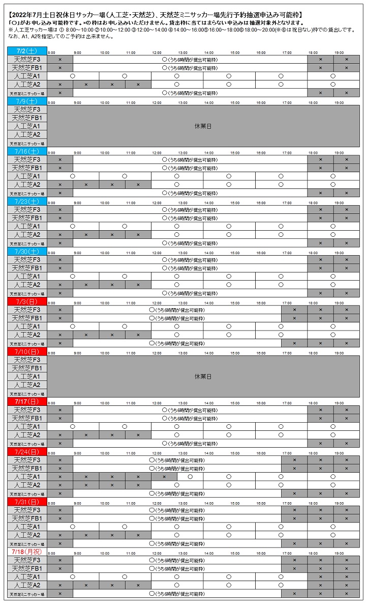 ※先行予約抽選申込期間では、1チーム合計12時間(うち、サッカー場は最大8時間)まで申し込みできます